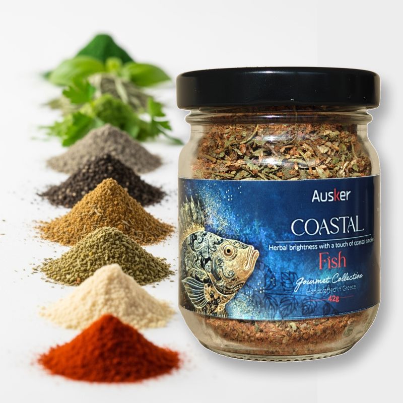 Ce mélange d'épices, composé de basilic, de romarin, de persil et de thym, offre une saveur méditerranéenne éclatante, équilibrée par le paprika fumé. Il accompagne à merveille les poissons grillés, les crevettes ou les coquilles Saint-Jacques, et sublime également les blancs de poulet ou les gratins de légumes aux courgettes, tomates et poivrons. Parsemez-en vos pommes de terre rôties ou incorporez-le à vos marinades à l'huile d'olive pour une touche marine.