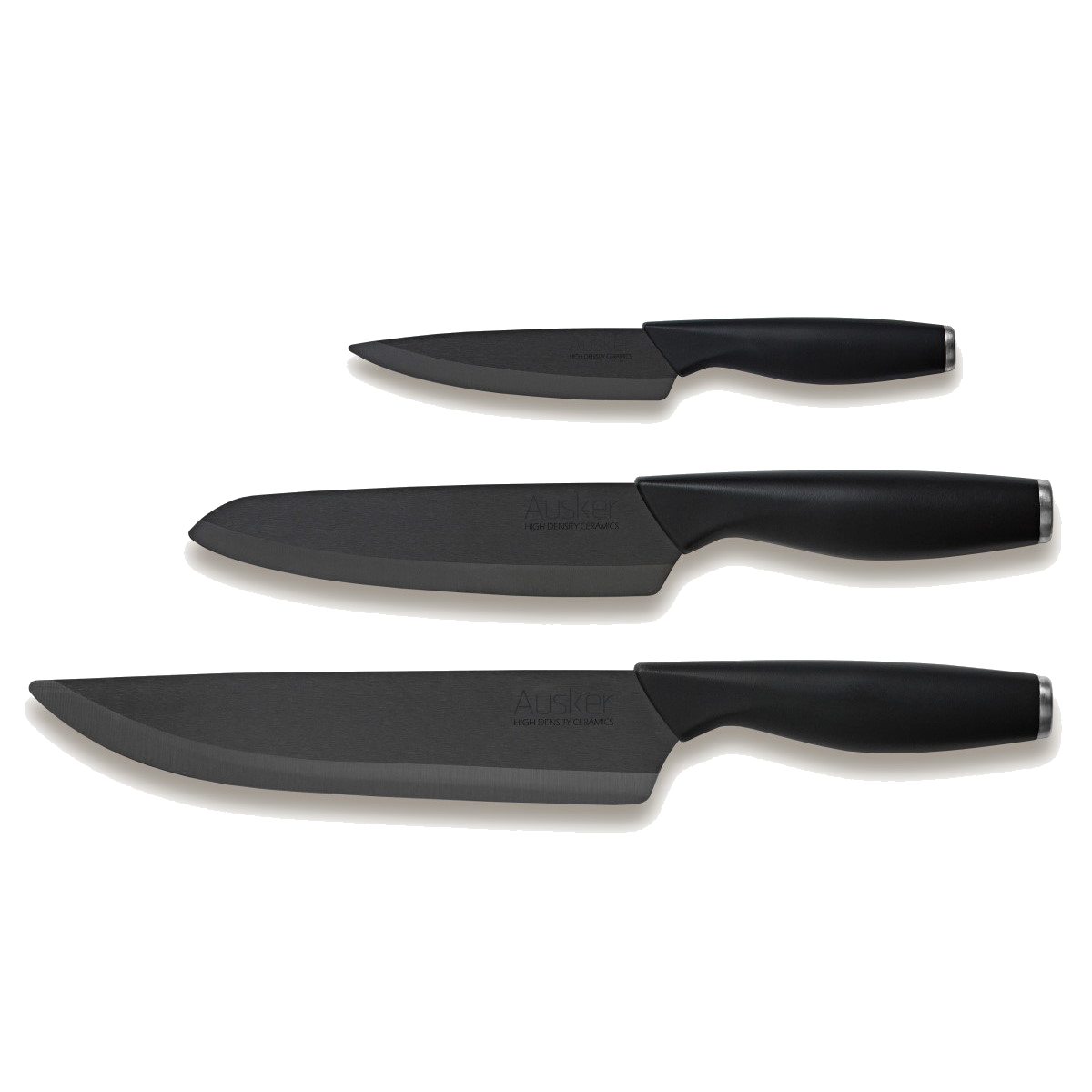 Ontworpen met comfort en eenvoud in gedachten, is het handvat van elk Ausker-mes gemaakt van ABS, een zacht, BPA-vrij en niet-giftig plastic, en afgewerkt met een zacht thermoplastisch rubber. De ergonomische vorm zorgt voor een goede balans en een stevige grip op het handvat.